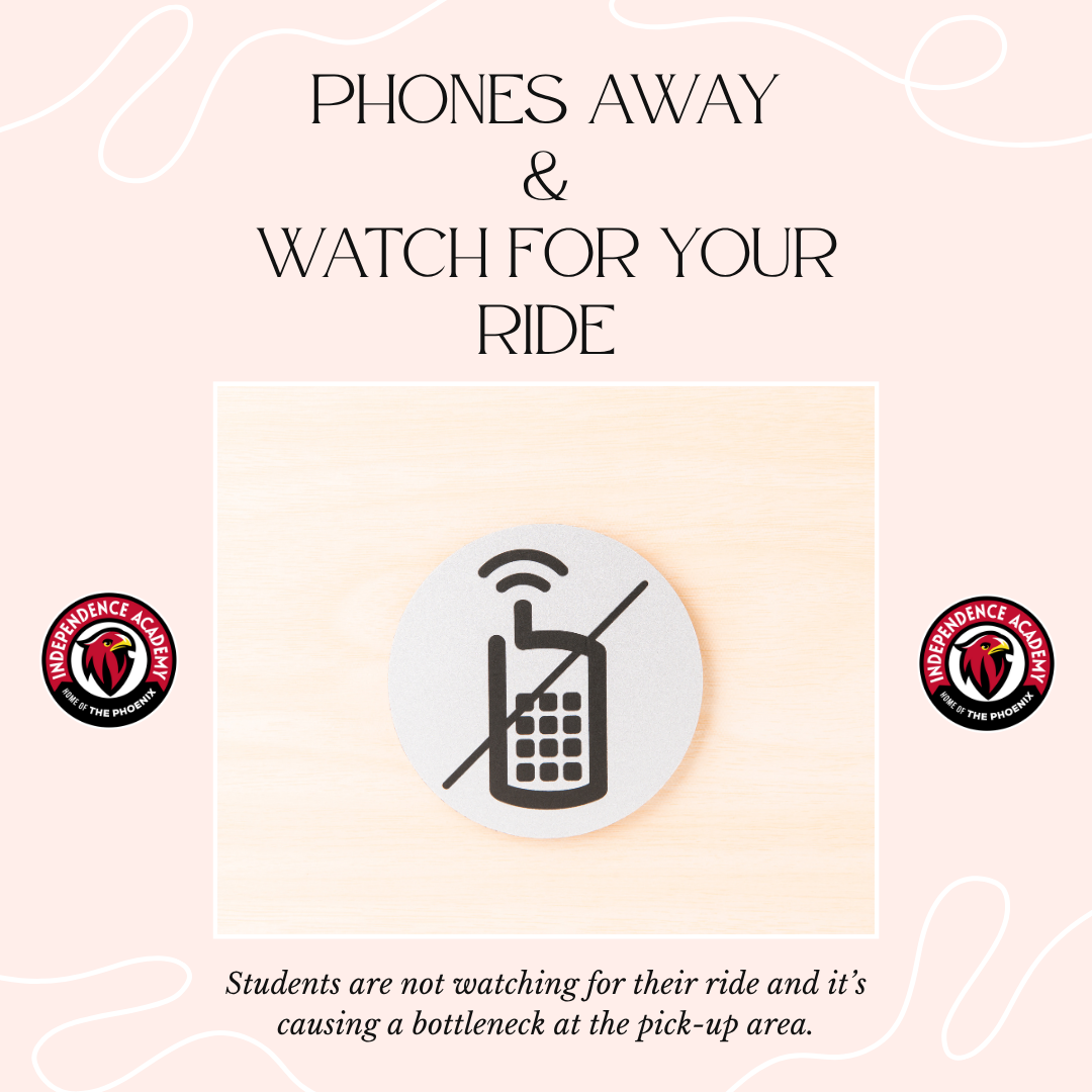 Middle School students please put your phones away and watch for your ride.