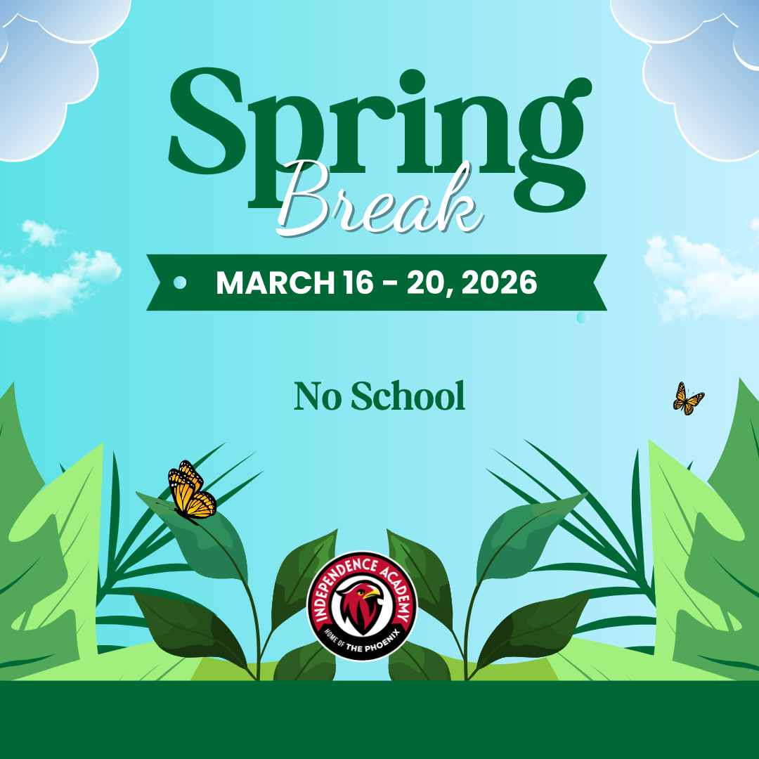 - Spring Break is the week of March 16th. Enjoy the break and we will see you back on Monday, March 23rd.